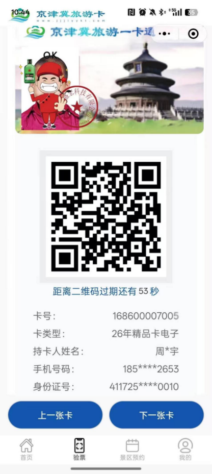 ⑥京津冀旅游景区联票河北(电子卡三地通用版、东城职工畅游卡、工会版、定制卡A/B(东城区税务局)、A卡、B卡)
